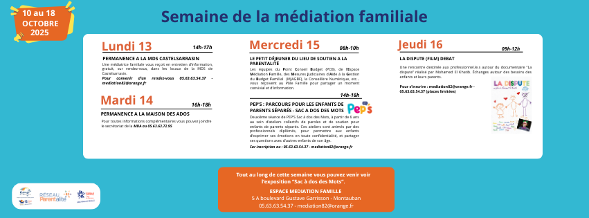 Dans le cadre de la Semaine de la médiation familiale, les médiatrices familiales de l'Espace…